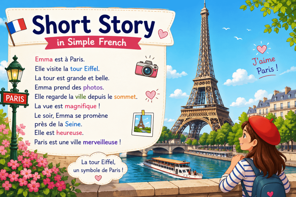 In this guide, you will learn how to talk about the Eiffel Tower in French with simple sentences, useful vocabulary, a short story, and practical tips. No grammar stress. Just real, useful French. Let’s go!